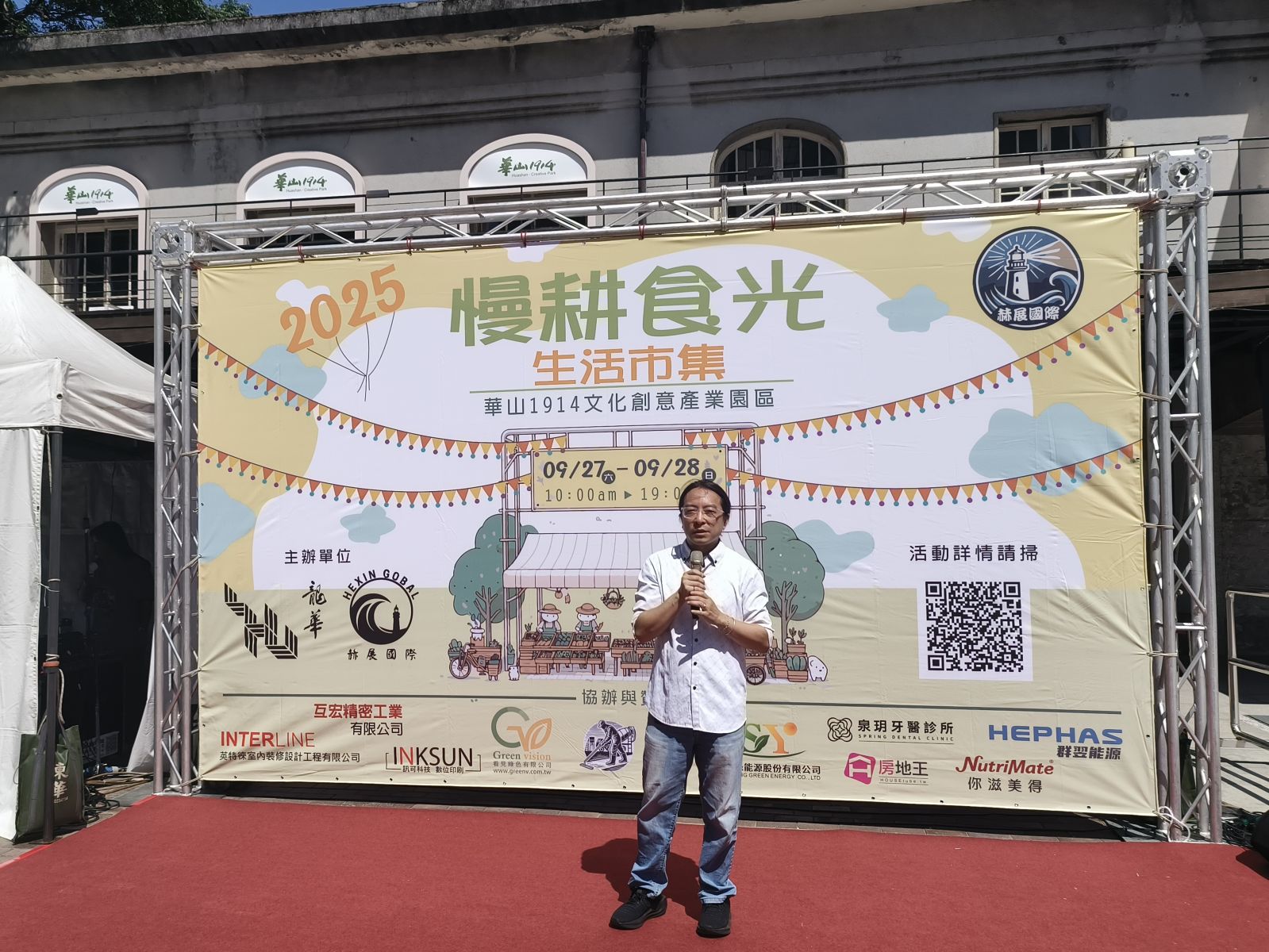 2025年9月27日至28日於華山文創園區舉辦的「慢耕食光」市集,昨日圓滿落幕。本次活動由 赫展國際公關行銷有限公司 與 龍華科技大學社會責任與永續發展中心共同主辦,結合小農市集與「永續農業與能源體驗區」,吸引了眾多親子家庭、市民朋友與產業界人士熱情參與。